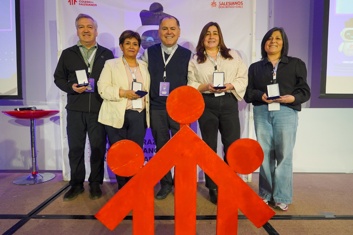 Uno a uno, los homenajeados -que cumplieron entre 20 y 51 años de servicio- fueron llamados al escenario para recibir la distinción de manos del Inspector de los Salesianos en Chile, P. Nelson Moreno, en un acto que celebró su invaluable contribución a la educación salesiana en el país.