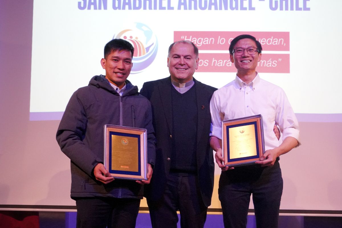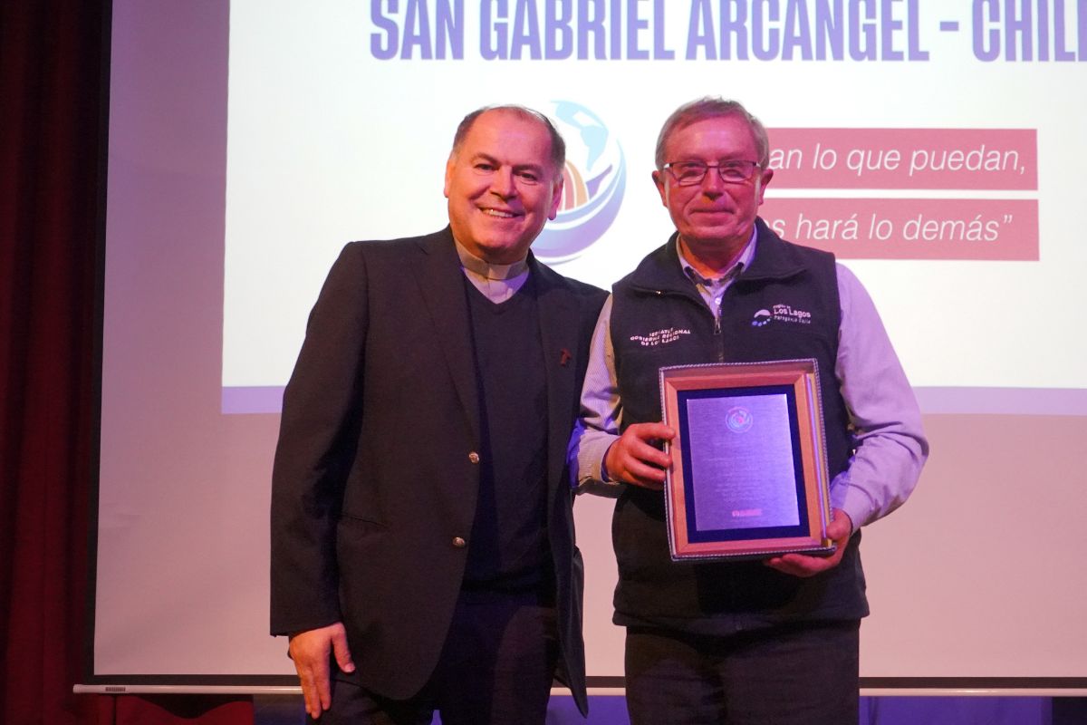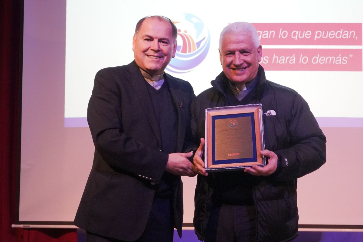 El P. Nelson Moreno, Inspector de los Salesianos en Chile, entregó un galvano a quienes aún están presentes por los años y trabajo realizado, provenientes de Italia, España, Polonia y Vietnam.