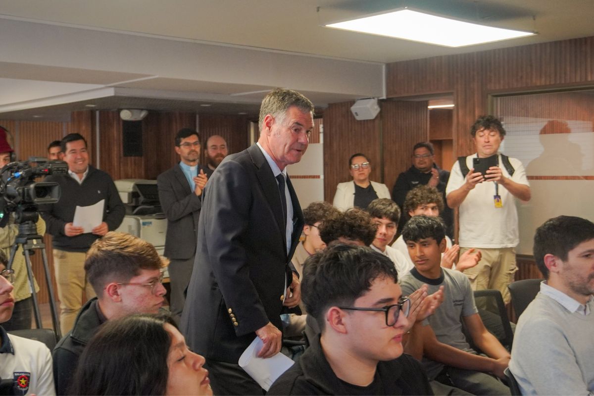 La clausura contó con la presencia de Manuel José Ossandón, presidente del Senado, quien dialogó abiertamente con jóvenes líderes, representantes de centros de estudiantes y grupos asociativos de diversas obras salesianas.