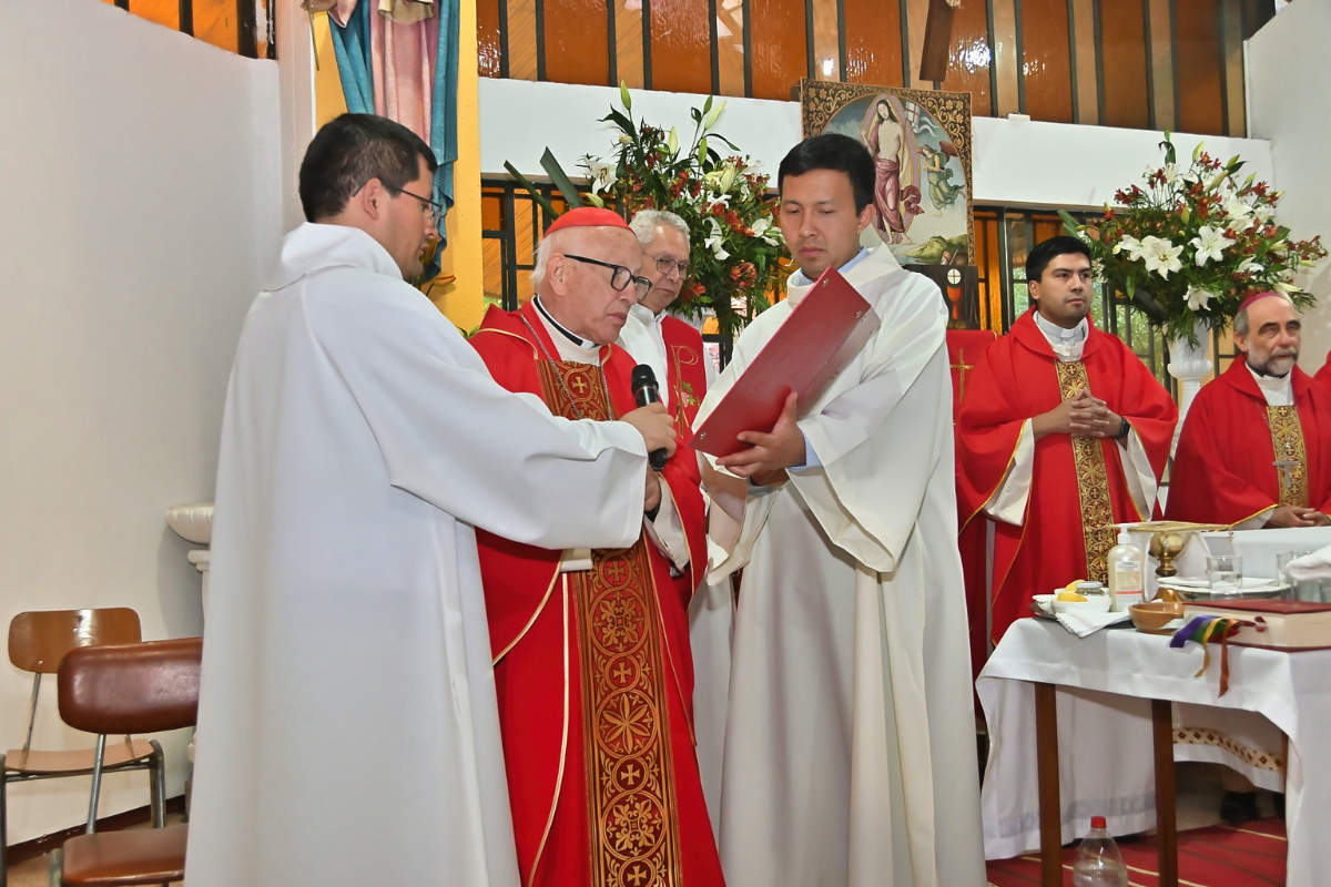 Tras profesar su fe, el cardenal Ezzati y monseñor Migone invocaron sobre ellos el don del Espíritu Santo mediante la imposición de manos. El rito culminó con la unción del Santo Crisma en sus frentes, un sello imborrable de su fe madura y comprometida.