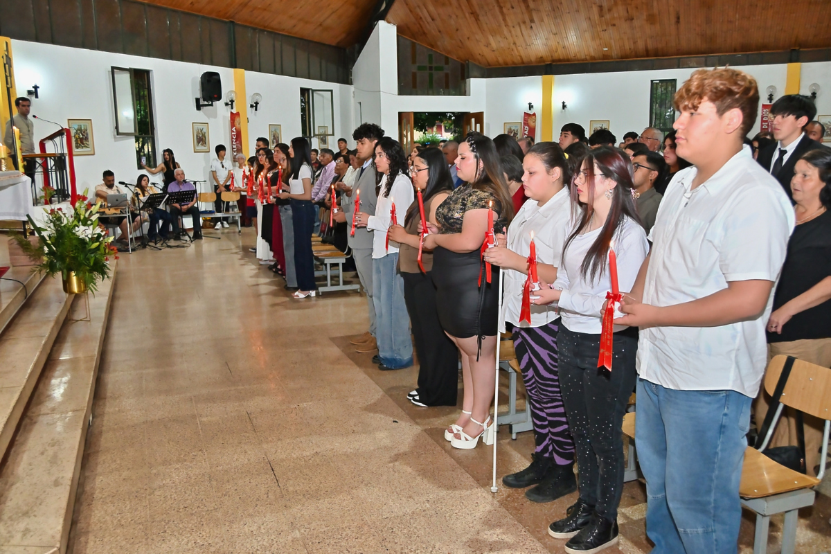 Uno de los momentos más significativos ocurrió cuando los confirmandos, con sus cirios encendidos como signo de la luz de Cristo resucitado, renovaron sus promesas bautismales.
