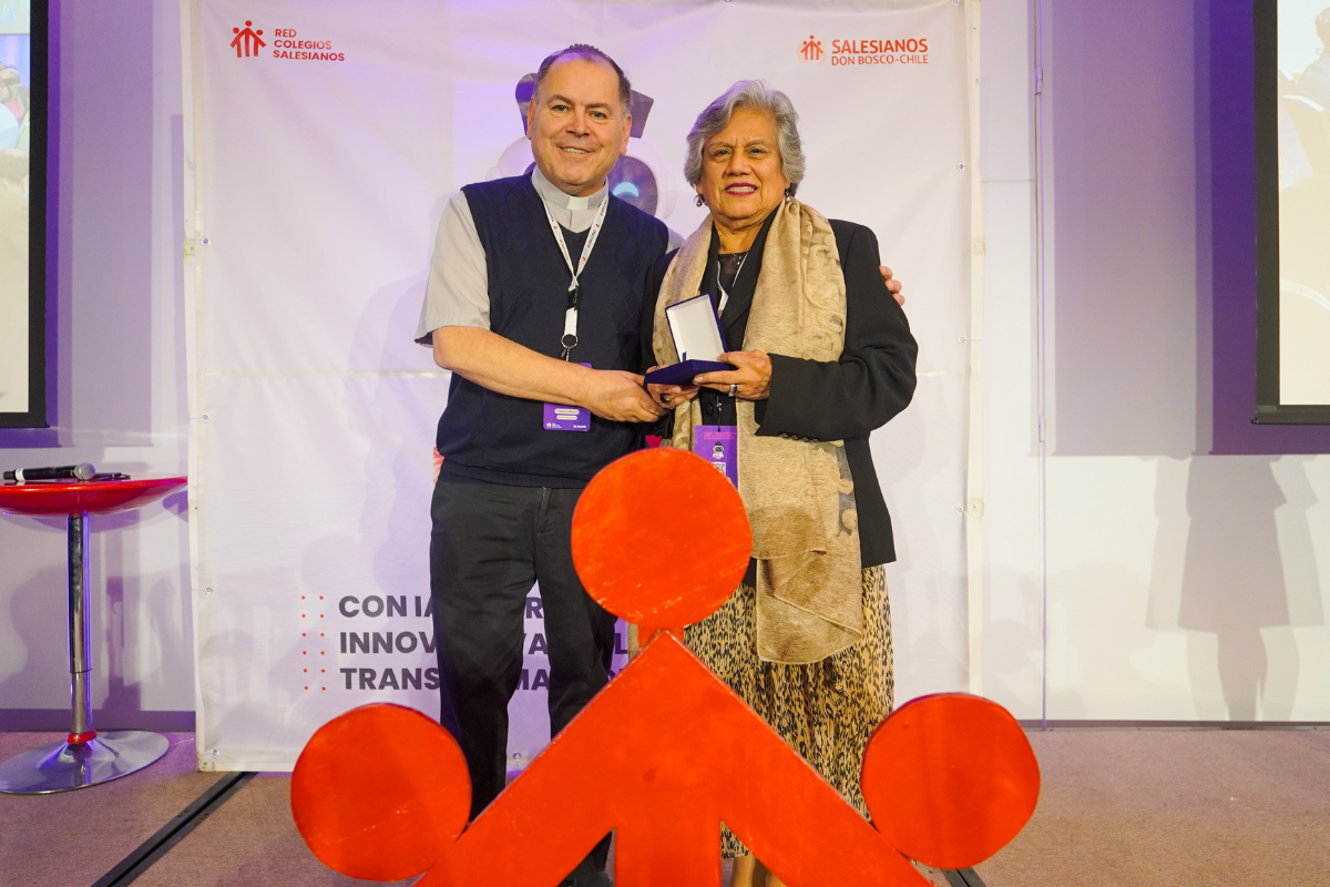 Uno a uno, los homenajeados -que cumplieron entre 20 y 51 años de servicio- fueron llamados al escenario para recibir la distinción de manos del Inspector de los Salesianos en Chile, P. Nelson Moreno, en un acto que celebró su invaluable contribución a la educación salesiana en el país.