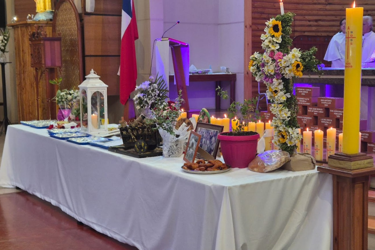 Uno de los momentos más significativos fue la presentación de dones en la «Mesa del Centenario». Las 25 comunidades y capillas que conforman la parroquia —desde los sectores urbanos hasta zonas precordilleranas como Pejerrey, Roblería y Chupallar— acercaron ofrendas representativas de su identidad y esfuerzo.